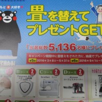 畳を替えてプレゼントGETキャンペーンを実施中です!キャンペーン期間は2016年3月8日~5月31日、9月1日~11月30日です。 このキャンペーンは期間中に熊本県産畳表で施工された方にその場で当たるスクラッチとはがきで …